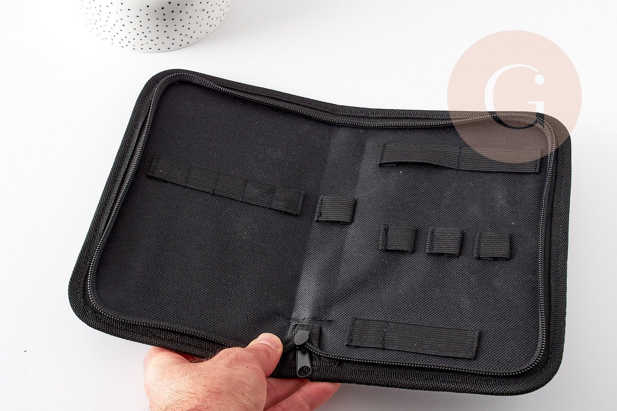 Ses élastiques permettent d'y glisser les pinces et autres outils , avec 9 espaces prévus.