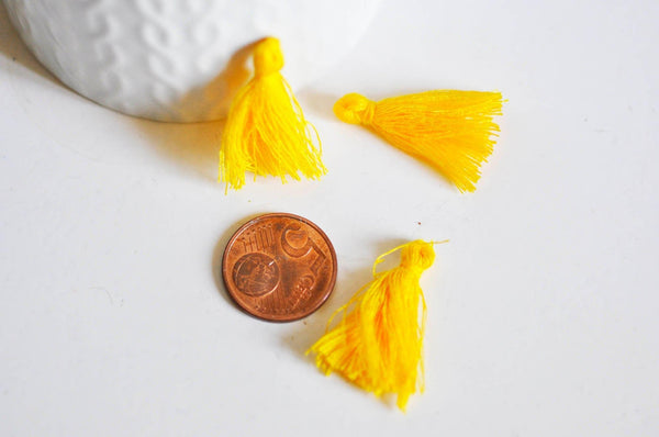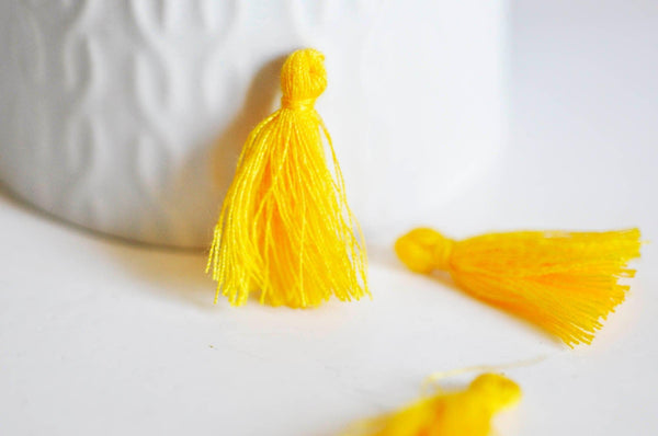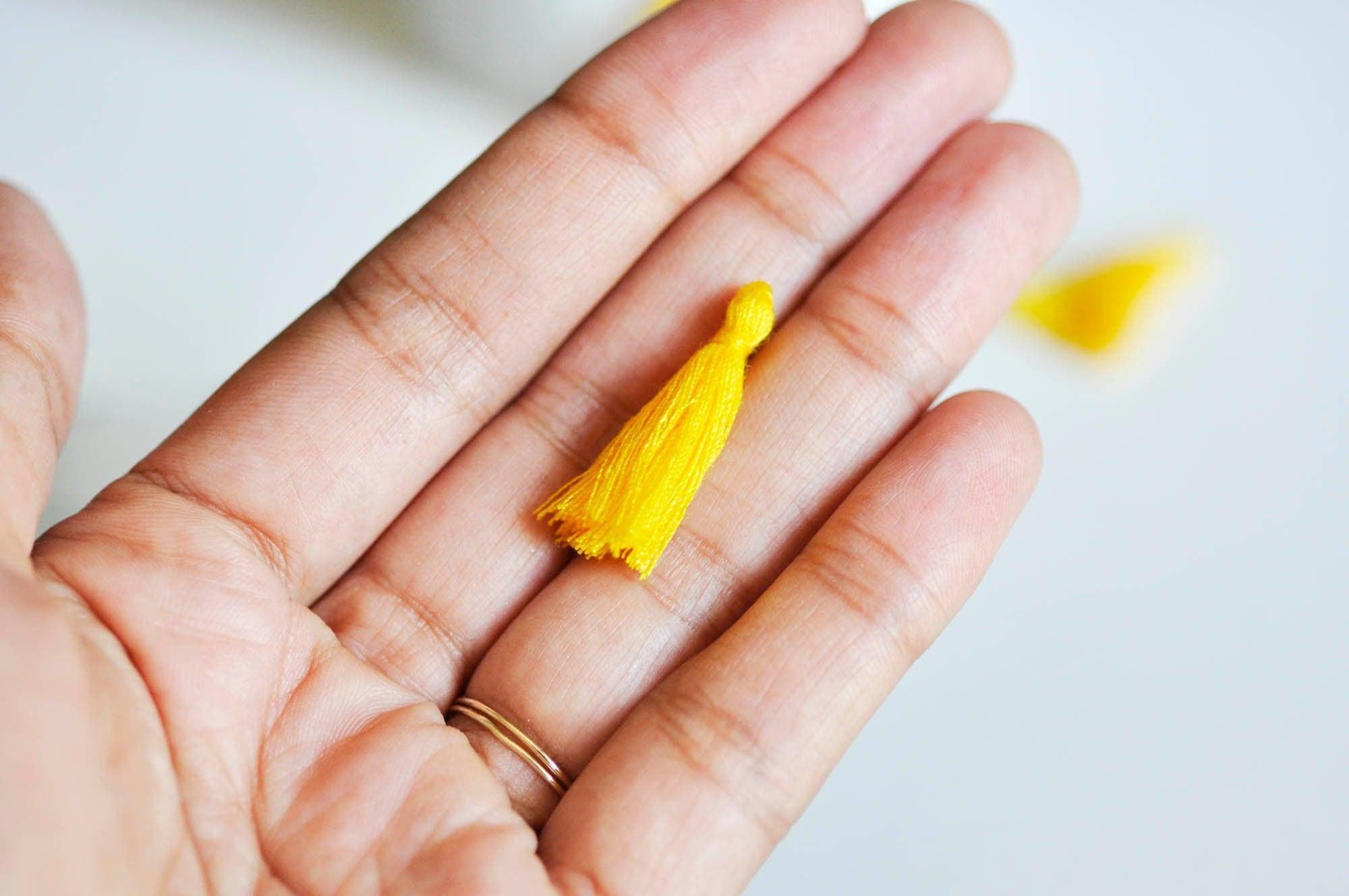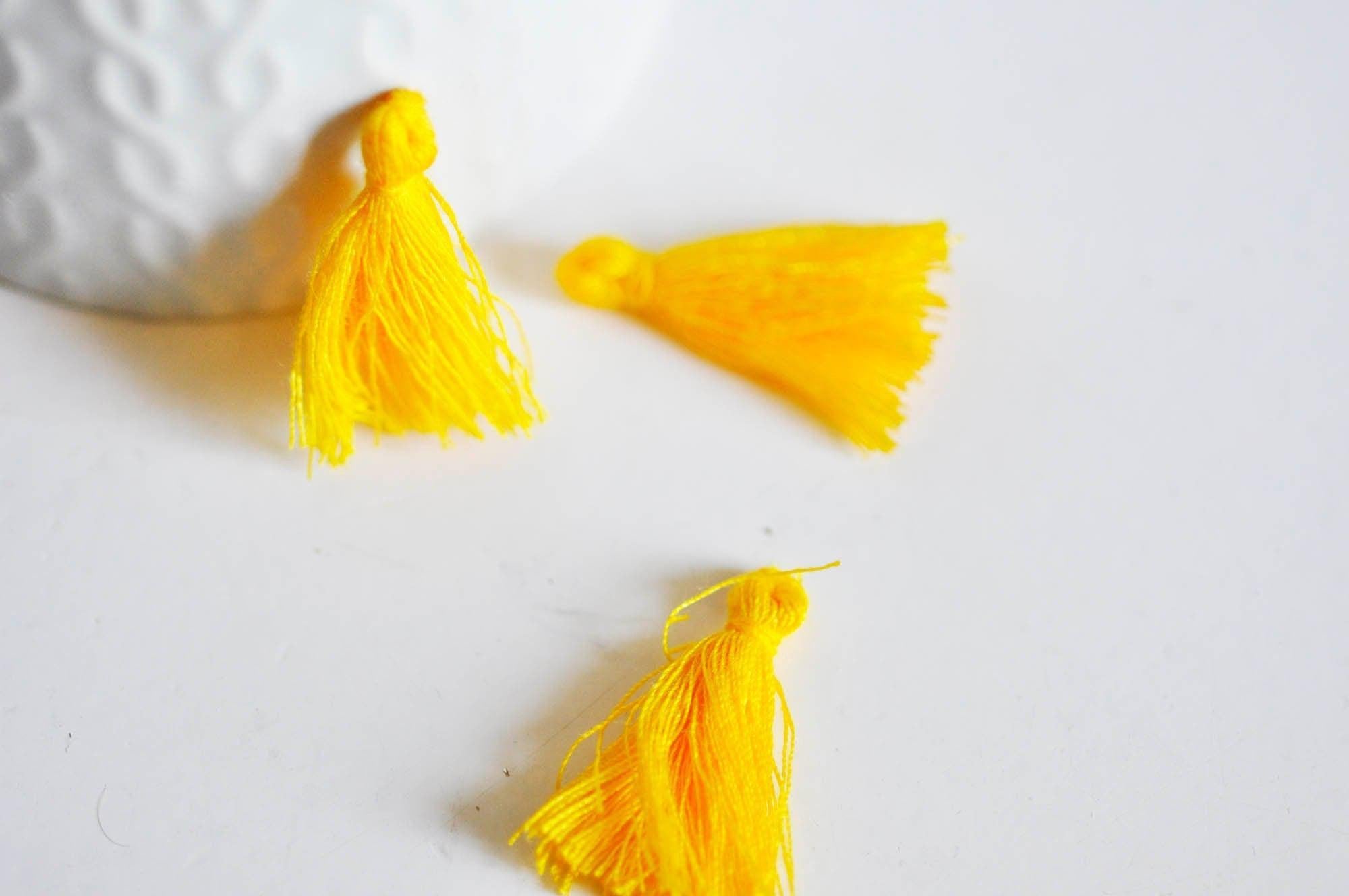 Apportez une touche de couleur vibrante à vos créations de bijoux avec nos pompons jaune safran en fil de coton.