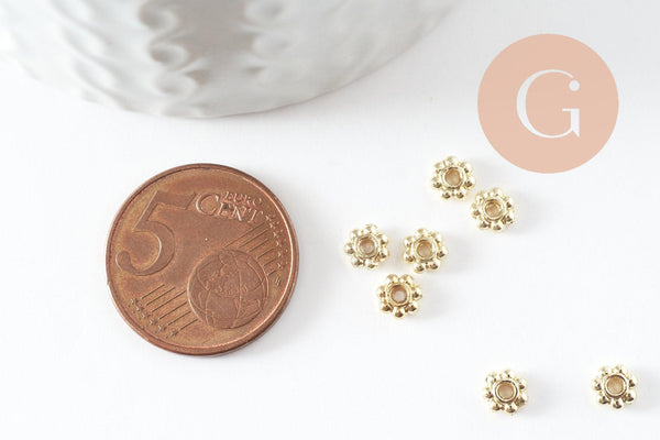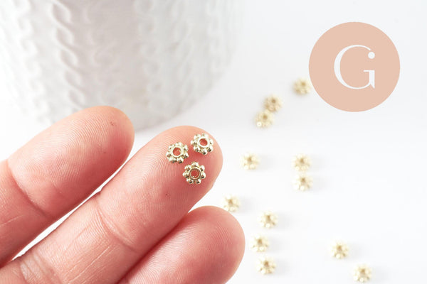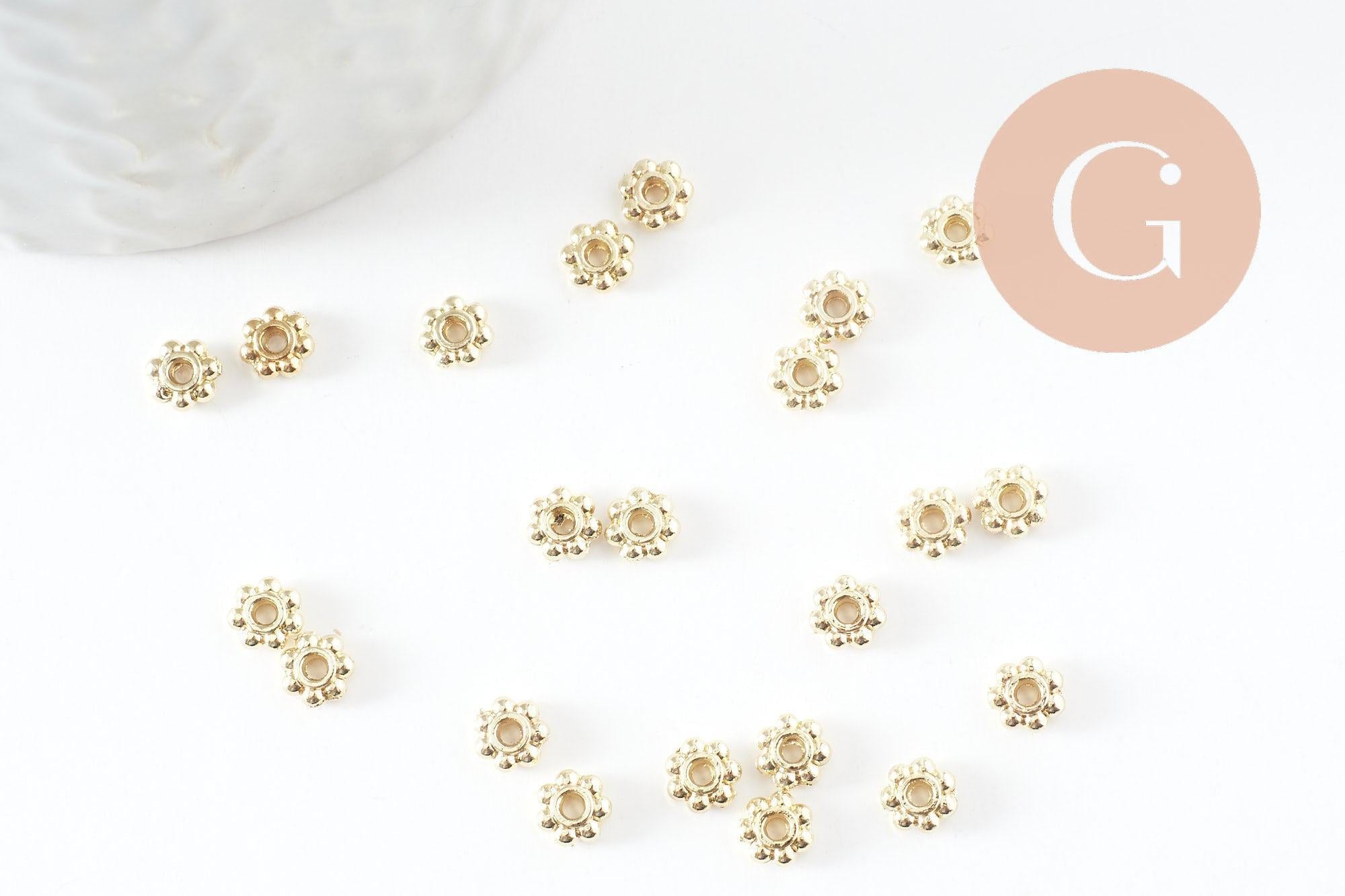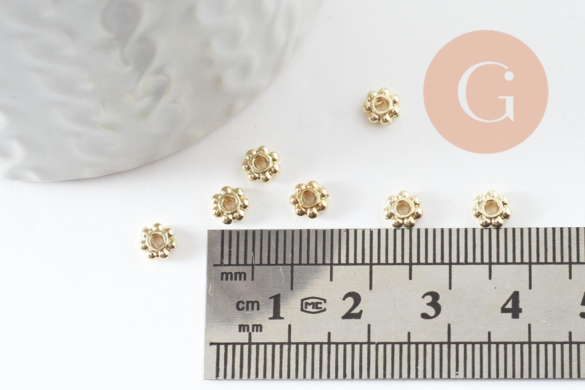 Ajoutez une touche précieuse à vos bijoux DIY avec ces petites rondelles intercalaires en zamac doré en forme de fleur. Leur finition brillante apporte éclat et élégance à toutes vos créations, qu’elles soient délicates ou audacieuses.