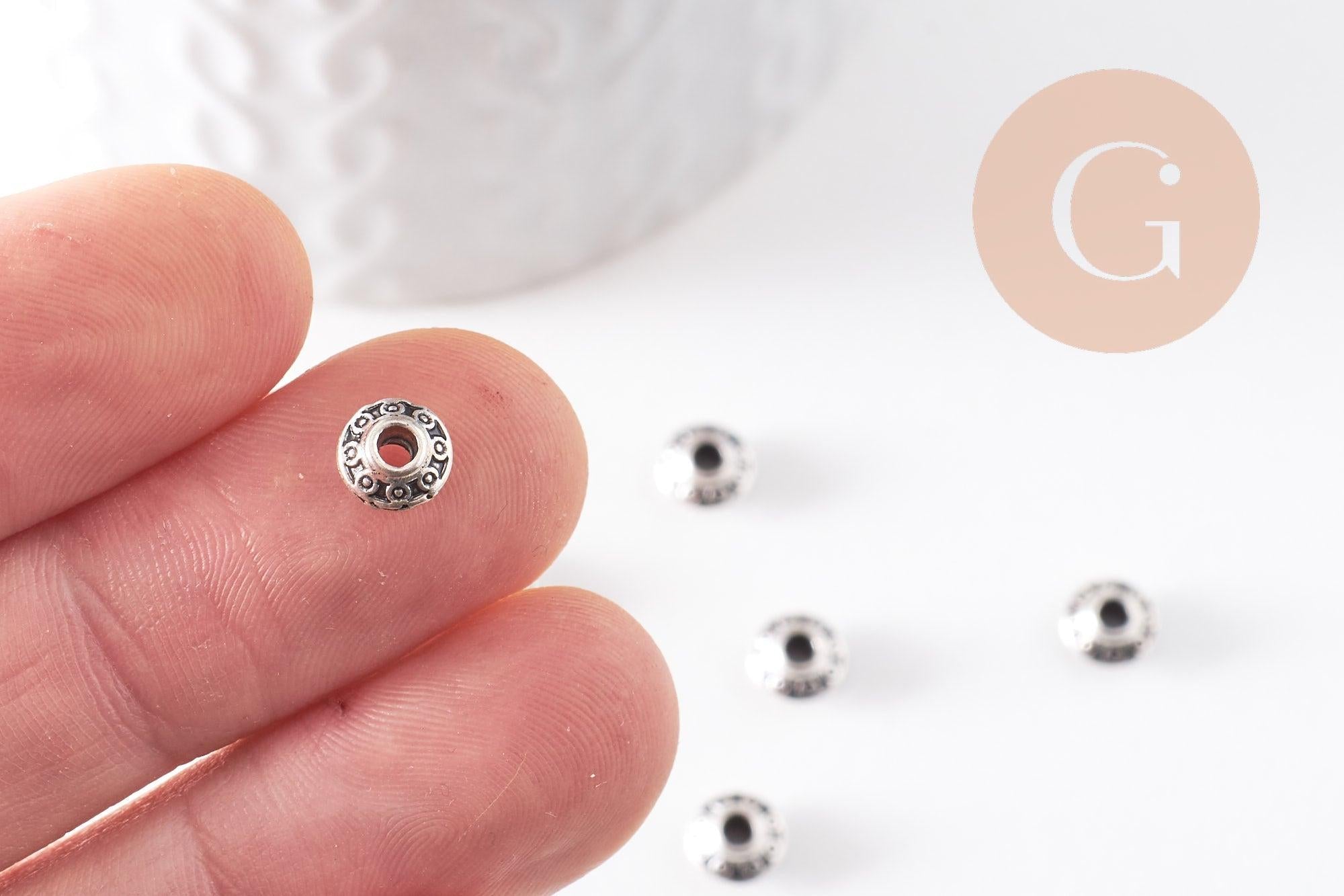 Un lot de 20 perles en argent tibétain avec un motif gravé, pour réaliser de beaux bijoux pleins de créativité.