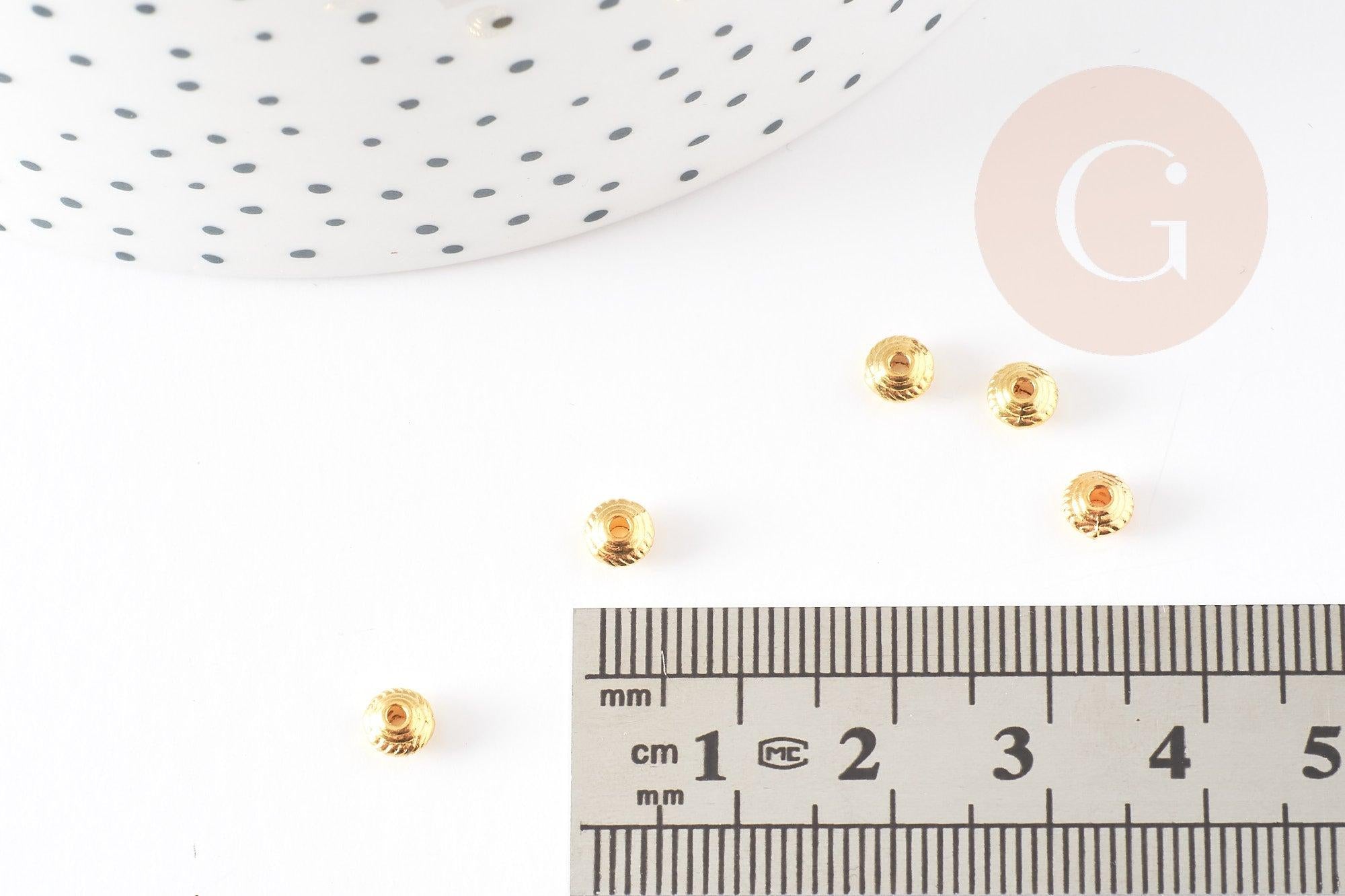 Ajoutez une touche ethnique et raffinée à vos créations avec ces perles intercalaires rondelles gravées en zamac doré. Avec leurs détails finement ciselés, elles s'intégreront parfaitement dans tous vos bijoux : colliers, bracelets, boucles d'oreilles…