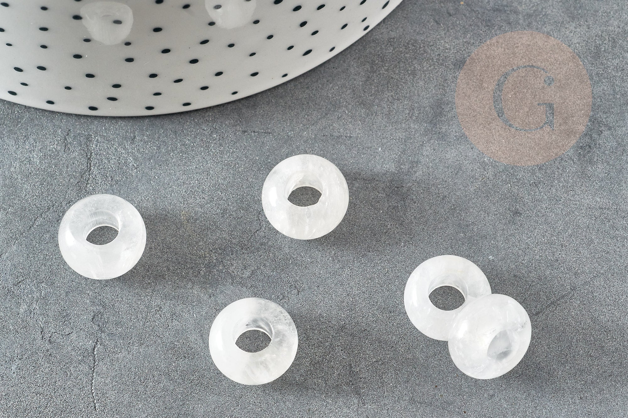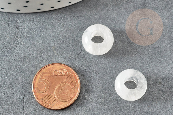 Perle donut rondelle cristal de roche naturel 14mm, pendentif rondelle pierre naturelle pour création de bijoux x2 (G9181)