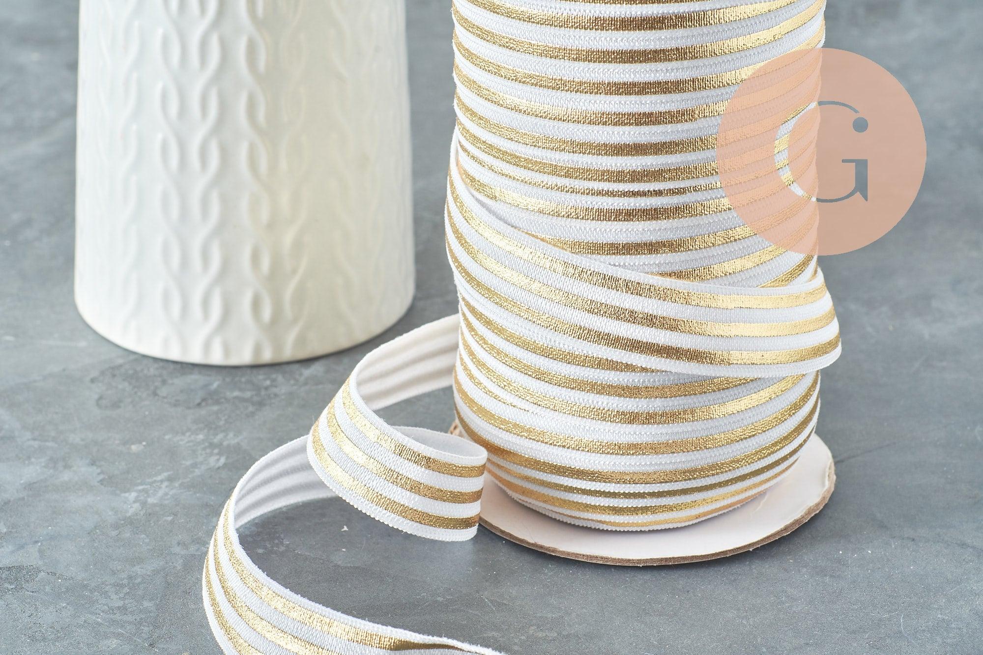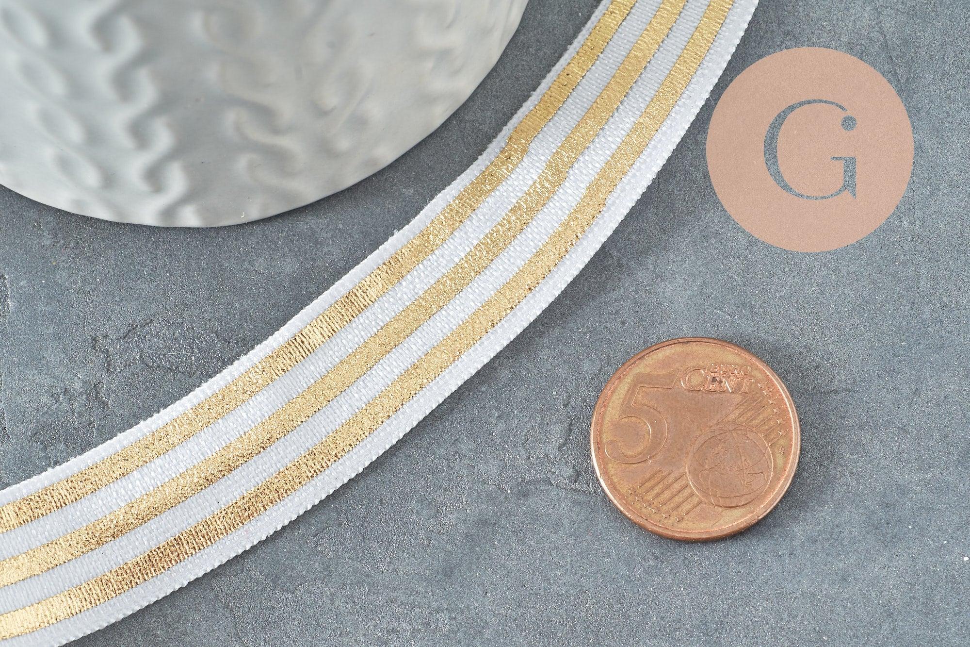 Ruban élastique rayé blanc or EFJF, fabrication bijoux, bracelet EVJF,ruban mariage,fourniture créative,scrapbooking,16mm,1 mètre-G8239