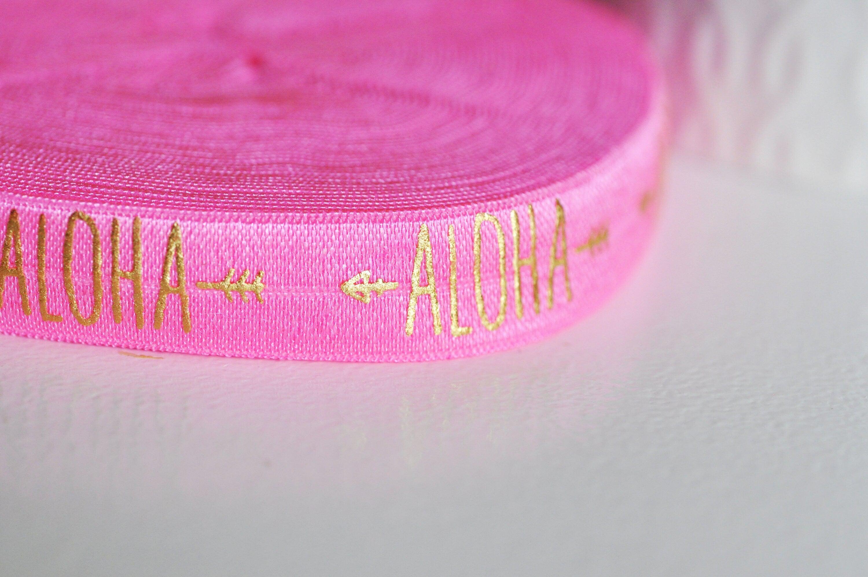 Ruban élastique rose or ALOHA EFJF, fabrication bijoux, bracelet EVJF,ruban mariage,fourniture créative, scrapbooking,16mm, longueur 1 mètre Un magnifique ruban élastique rose et or avec écrit "ALOHA", une fourniture élégante et raffinée pour vos enterrements de vie de jeune fille,mariage, anniversaire,...
