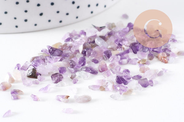 Sable améthyste violette naturelle brute roulée, fourniture créatives,pierre naturelle, litotherapie, chips amethyste, création bijoux,Sachet 20 grammes,3-9mm.