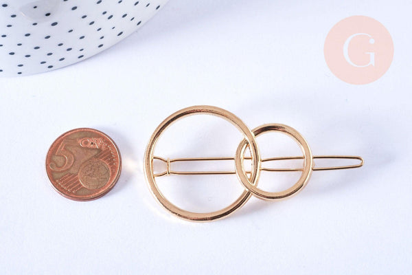 Support barrette clip anneaux entrelacés métal doré sans plateau 47mm l'unité