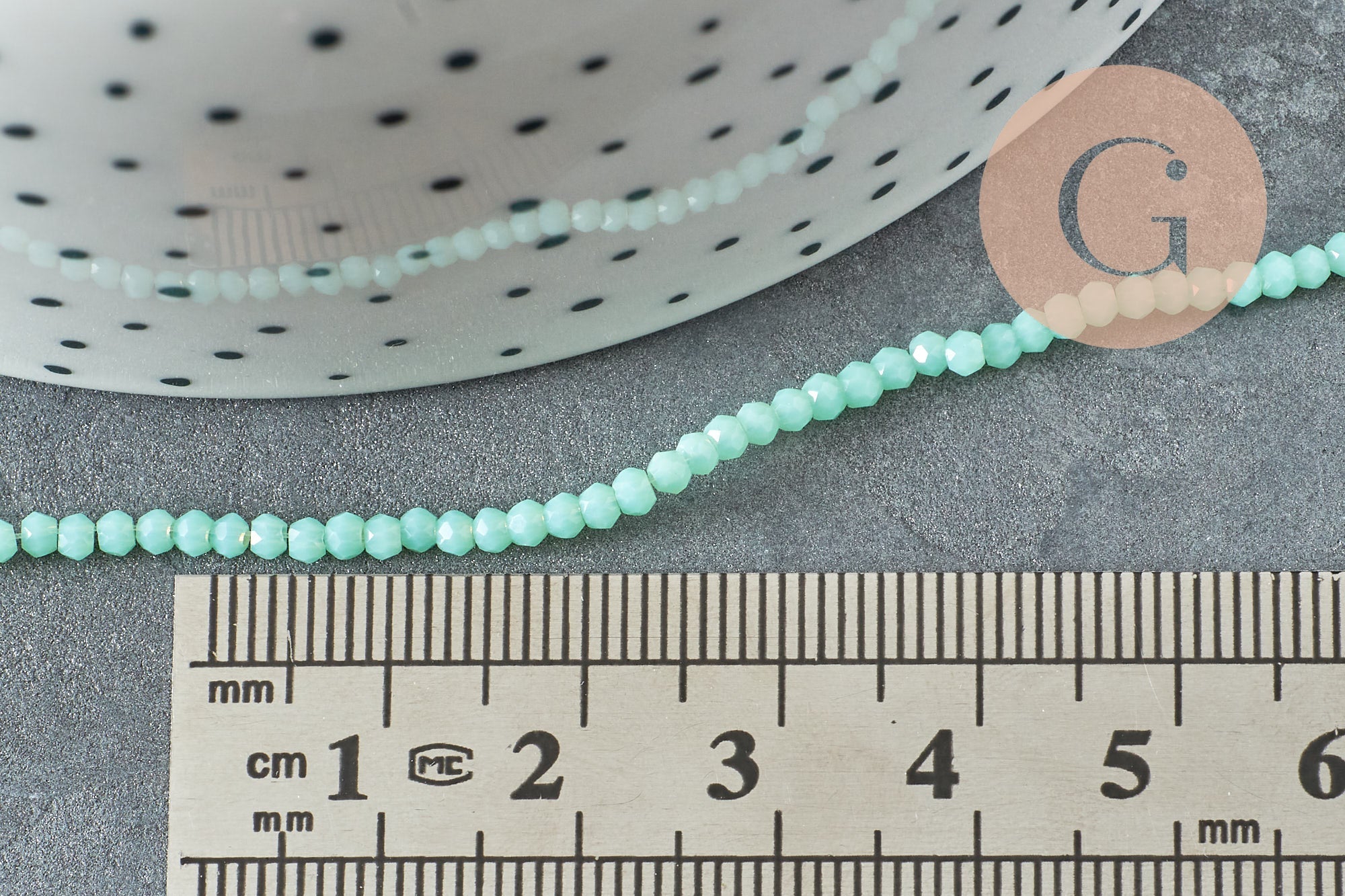 Perles toupies à facettes en cristal bleu turquoise irisé, idéales pour réaliser tous vos bijoux fantaisie DIY vendues par fil de 33cmCes petites perles en cristal à facettes sont adorables et si faciles à utiliser :Réalisez des boucles d'oreilles fantaisie...